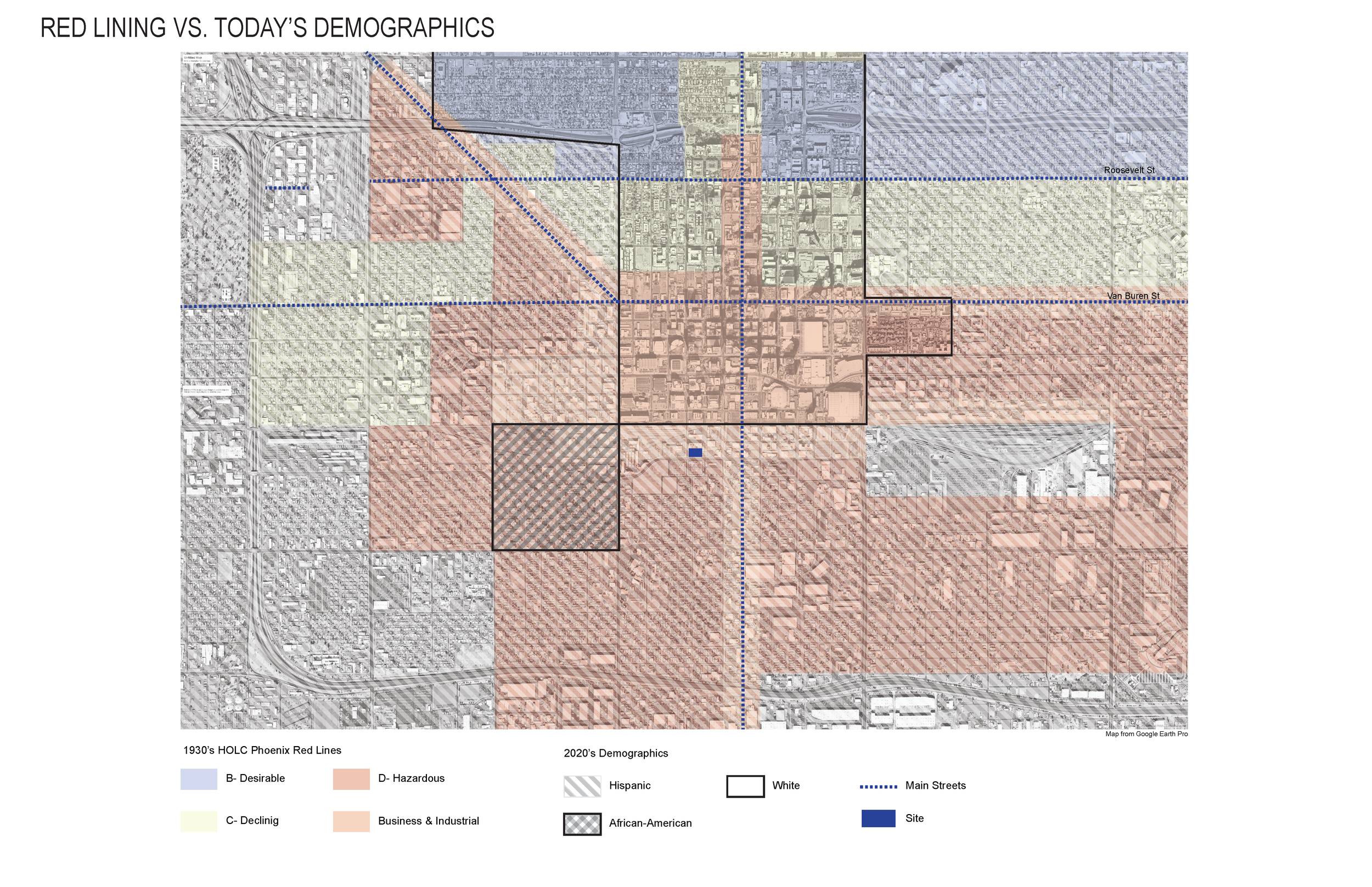 The story of this project begins at the intersection of Lincoln Street and First Avenue in Central Phoenix, in the heart of the Warehouse District. This site sits at a critical crossroads, physically, culturally, and historically. Once an industrial zone supporting the railroad and early manufacturing in Phoenix, the Warehouse District has evolved into a layered urban environment where creative studios, small businesses, infrastructure, and emerging residential development coexist. Yet despite this transformation, the area continues to carry the imprint of its past; shaped by economic forces, policy decisions, and questions of access and belonging.