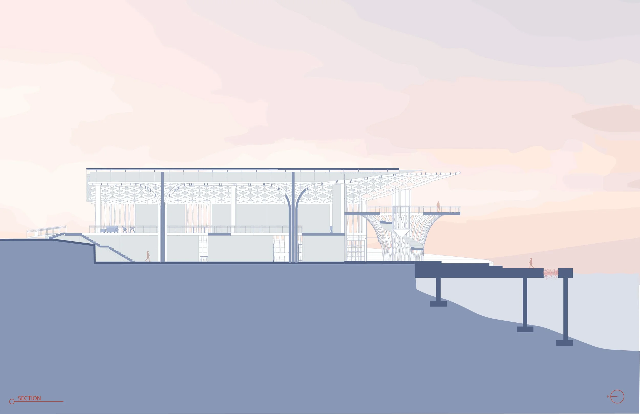 Strata House in Tempe Town Lake celebrates connection and growth by embodying the coming together of individuals into a place where nature and community are integrated into one; just like roots intertwine and give support to create a thriving ecosystem. At its core, the boathouse features a water garden that ‘flows’ into the structure and flourishes into a distinctive cholla-inspired set of columns that gives stability to the boathouse.