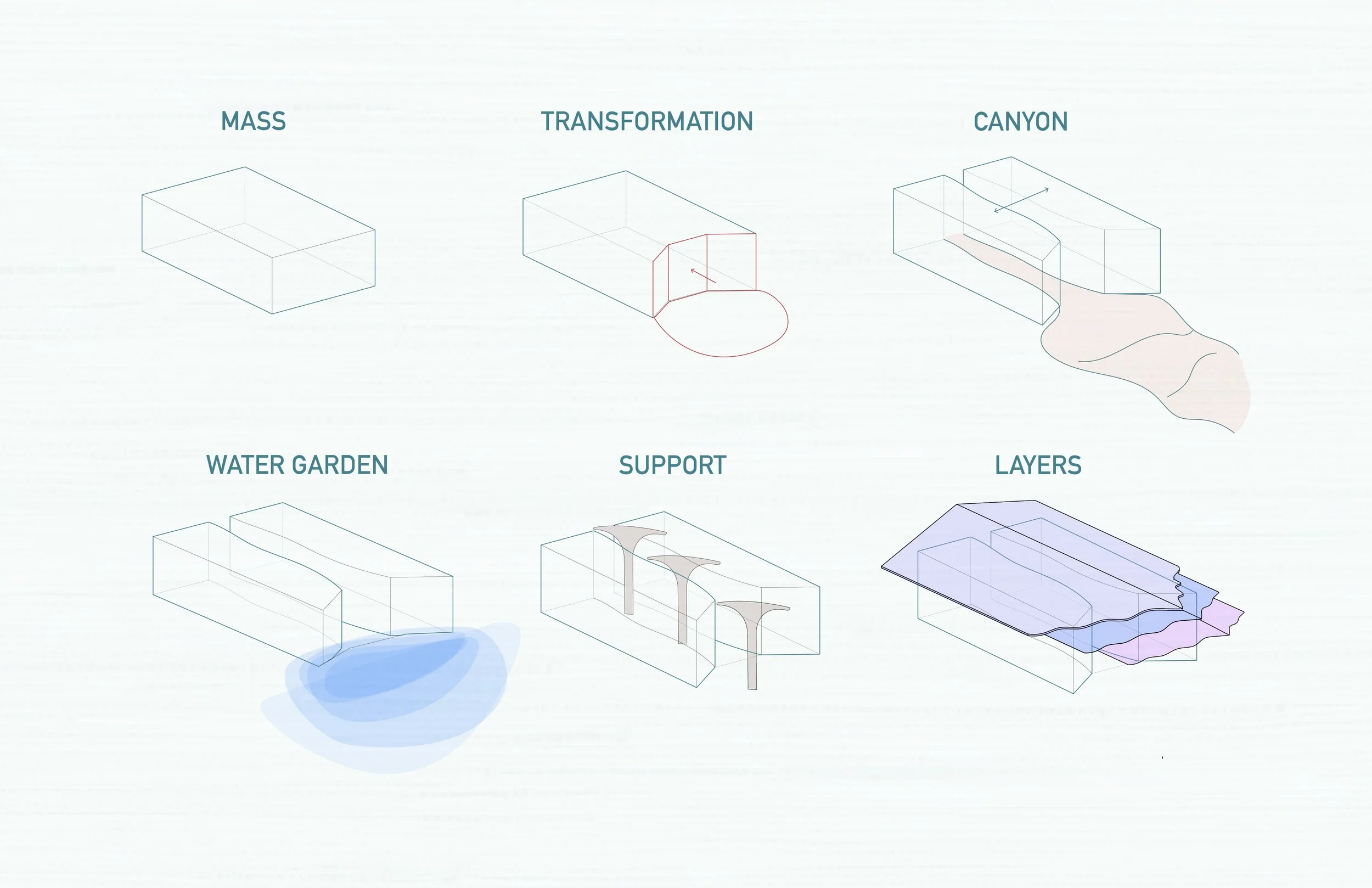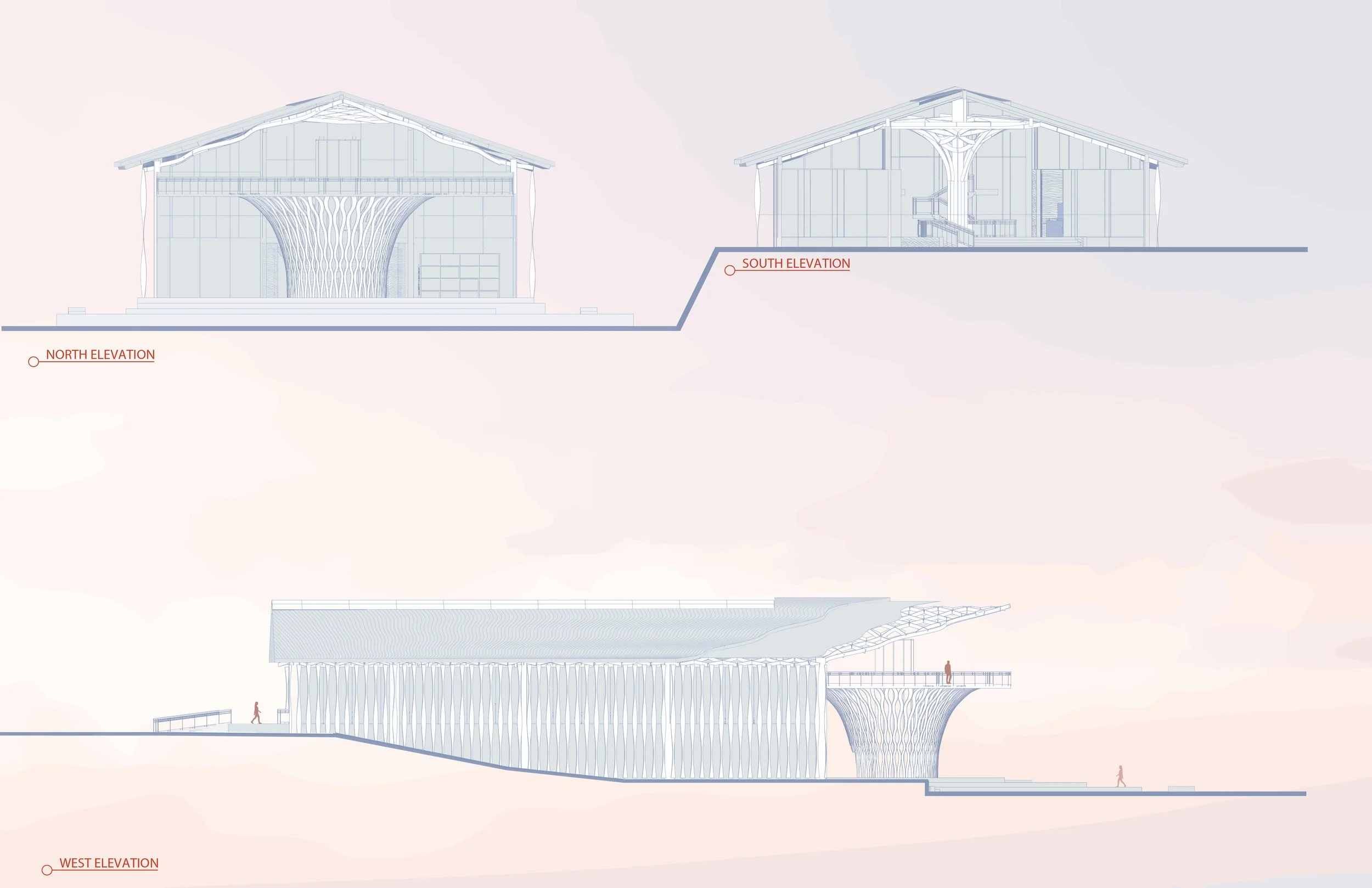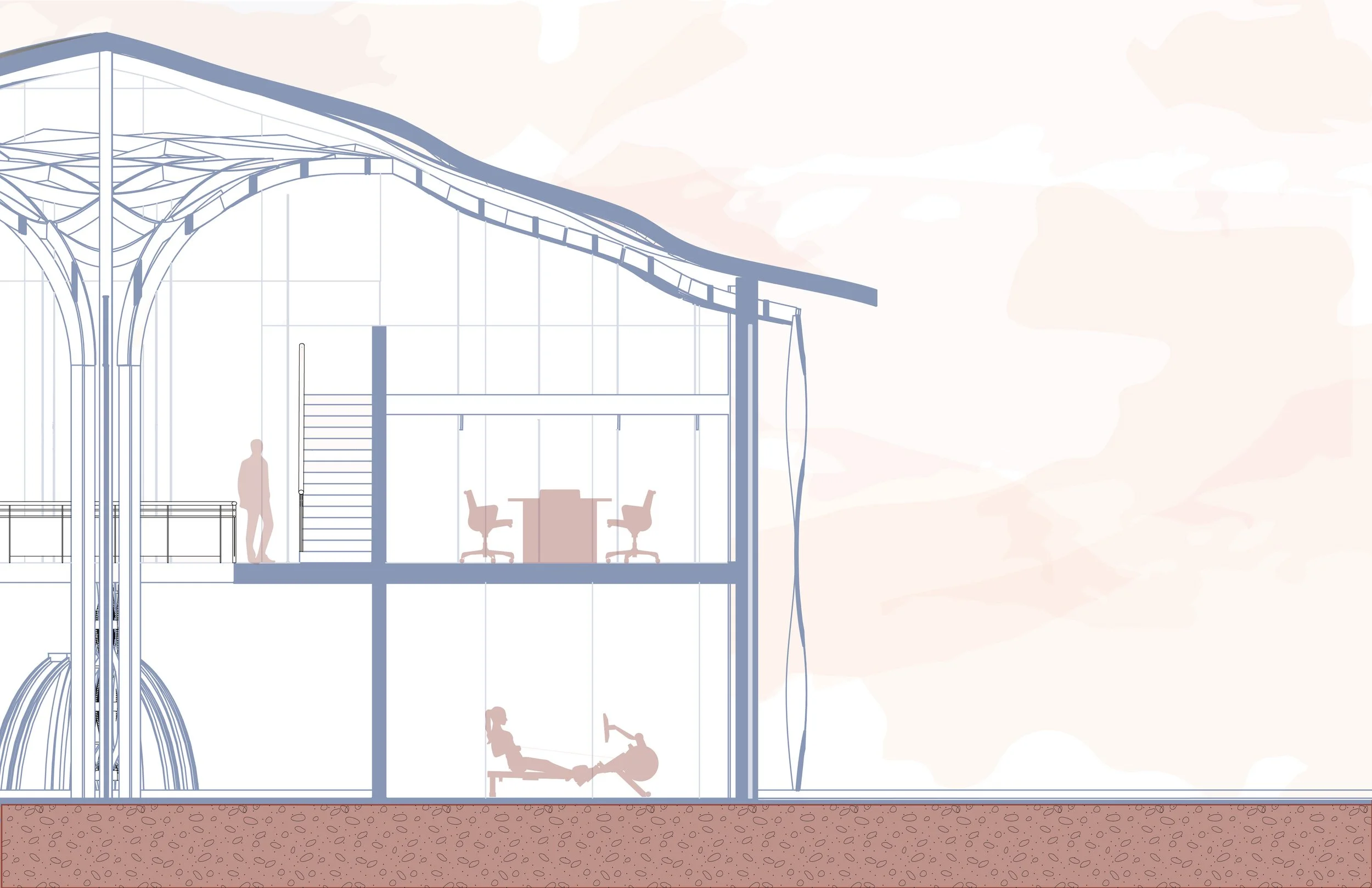 These diagrams capture the conceptual foundation of our project, incorporating elements such as the cholla cactus, the sense of community, and the landscape of our site.